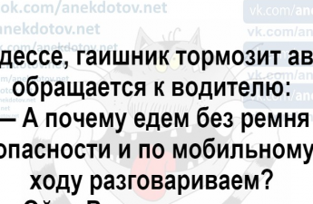 Анекдот про автолюбительницу Поделиться на FacebookПоделиться в PinterestПоделиться в ВКПоделиться в ОКПоделиться в Twitter Для того,чтобы анекдот был хорошим он должен быть веселым и содержать совершенно неожиданную развязку.Сегодня у нас именно такие анекдоты. Хорошего вам настроения!Читай продолжение на следующей странице 1 2 Читать дальше →