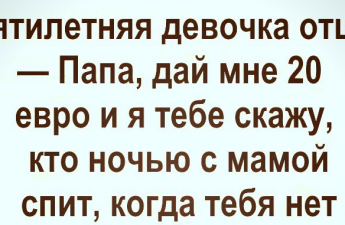 Анекдот про хитрую жену Поделиться на FacebookПоделиться в PinterestПоделиться в ВКПоделиться в ОКПоделиться в Twitter Сегодня у нас отличные анекдоты, которые порадуют вас и по настоящему развеселят. Отличного вам настроения и позитивного отношения к жизни!читайте нашу подборку:Читай продолжение на следующей странице 1 2 Читать дальше →