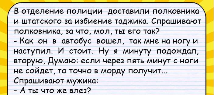 Хорошие анекдоты — наша любимая тема. Смешные, веселые, оставляющие отличное послевкусие и приносящие радость и хорошее настроение! Именно такие анекдоты мы собираем для вас и ежедневно публикуем. Надеемся,что ваше настроение повысилось и жить вам стало хотя бы немного, но веселее