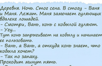 Анекдоты дня Поделиться на FacebookПоделиться в PinterestПоделиться в ВКПоделиться в ОКПоделиться в Twitter Если вы обожаете отличные анекдоты — это к нам. У нас очень много смешных анекдотов, которые развеселят вас и оставят настроение просто отличным.Читайте и получайте удовольствие! Читай продолжение на следующей странице 1 2 Читать дальше →