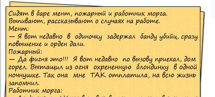 Отличные анекдоты всегда заставляют смеяться от души и по настоящему. Поэтому мы предлагаем вам уже ставшую привычной подборку смешных историй, рассказов и анекдотов , собранных со всего интернета. Надеемся,вам нравится