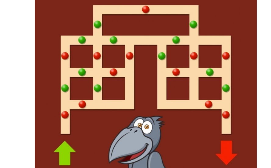 Условия просты: нужно помочь вороне добраться от зеленой стрелки до красной, чередуя красные и зеленые точки и минуя два одинаковых цвета подряд.