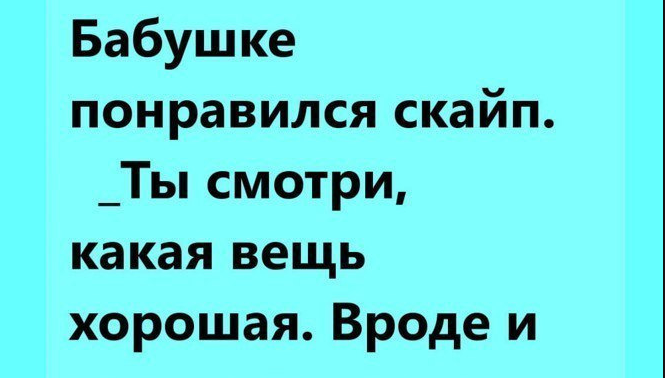 А ведь если вдуматься, то бабуля права. Скайп — прекрасное изобретение, позволяющее практически принимать гостей дома, при этом совсем не нужно убираться и готовить еду для того,чтобы накормить гостей