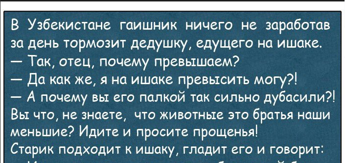Сегодня у нас очень смешной анекдот про гаишника и ишака. А еще анекдоты про жен, про армию и про поездки за границу. В общем, для каждой жизненной ситуации есть свой смешной анекдот