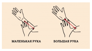 Для того, чтобы пройти тест вам даже не потребуется линейка. нужно Попытаться измерить длину руки с помощью ладони — как показано на картинке. Если удалось — у вас большая рука, не удалось — маленькая