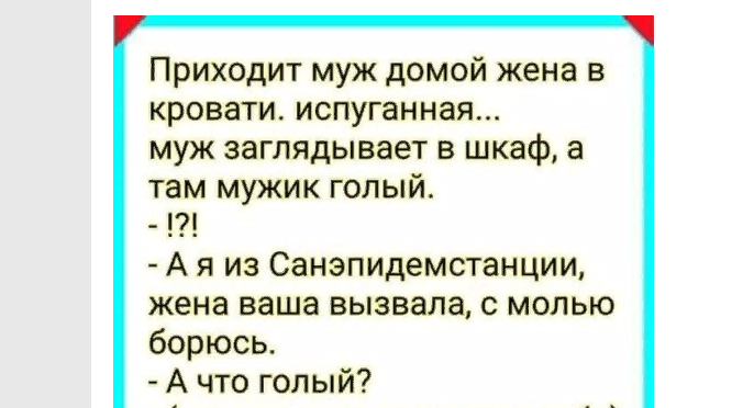 Роскошные анекдоты Поделиться на FacebookПоделиться в PinterestПоделиться в ВКПоделиться в ОКПоделиться в Twitter Если вы любите смешные анекдоты — это к нам. У нас немало смешных анекдотов, которые развеселят вас и оставят настроение просто отличным.Читайте и получайте удовольствие!Читай продолжение на следующей странице 1 2 Читать дальше →