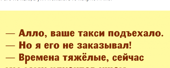 Анекдот —это, как известно, короткий рассказ о том, что вызвало больше смех или повеселило. Чаще всего анекдоту свойственно неожиданное смысловое разрешение в самом конце, которое и рождает смех. Сегодня именно такие анекдоты,читайте их с удовольствие
